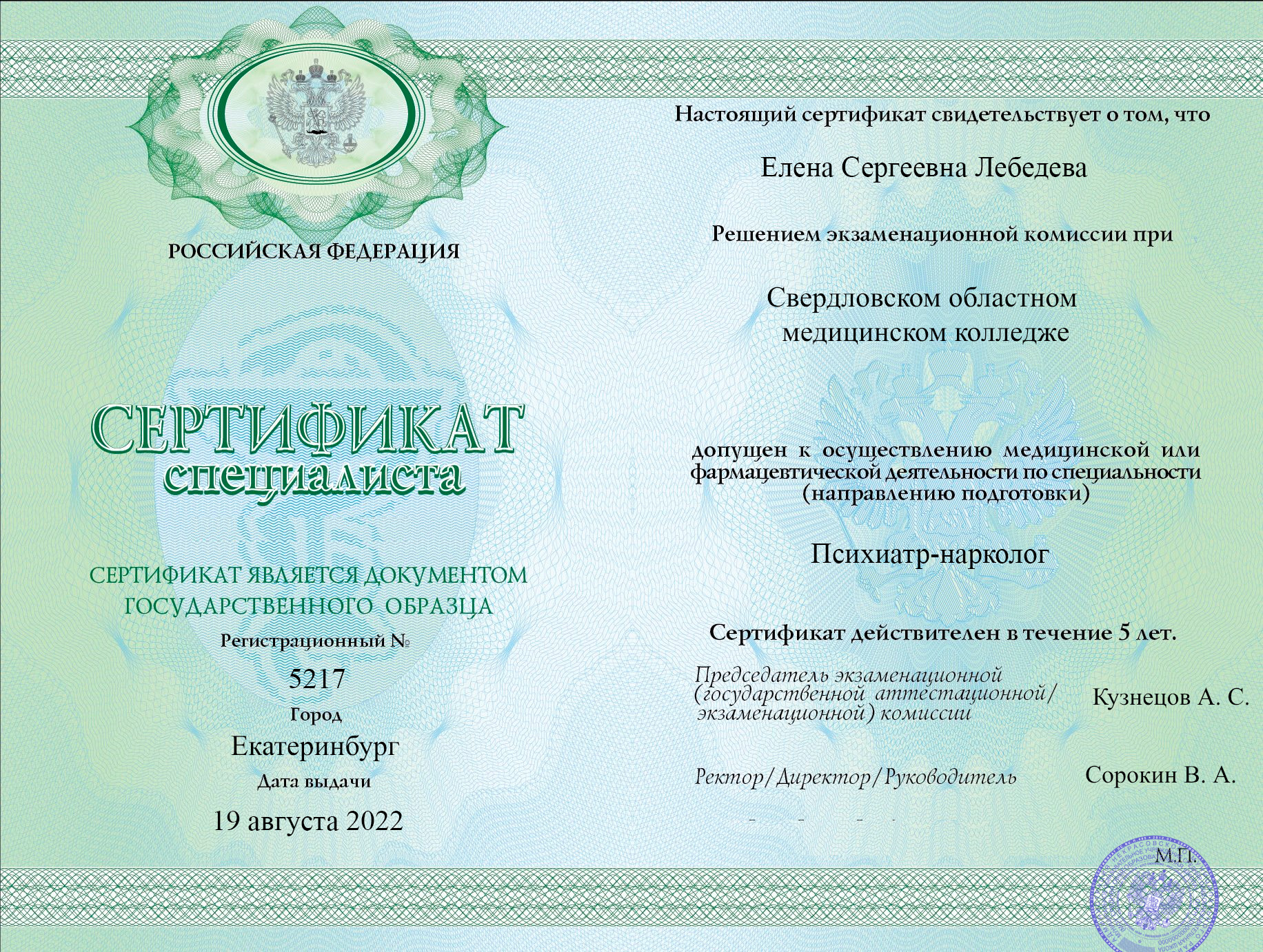 Елена Сергеевна Лебедева врач нарколог клиники доктора Стукаловой в Звездном